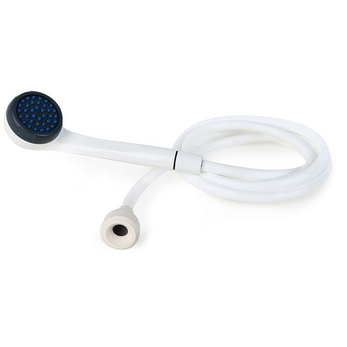 Portable hand shower set with 2m hose. Slip on couplings attach to taps.