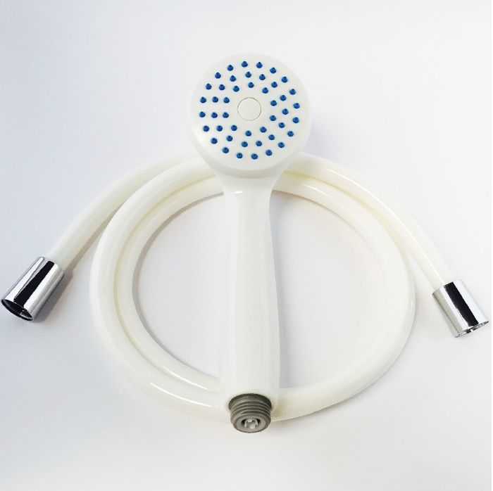Bondi1 function hand shower set - white hand piece, 1.5m whiteflex reinforced hose with chrome plated brass couplings, one non kink swivel end