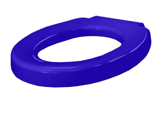 MEDI RING Blue SINGLE FLAP Assistance Toilet Seat. A robust seat with a 50mm higher sitting position, with stabilising buffers that lock into the pan. Delivered with top and bottom fixing kits.