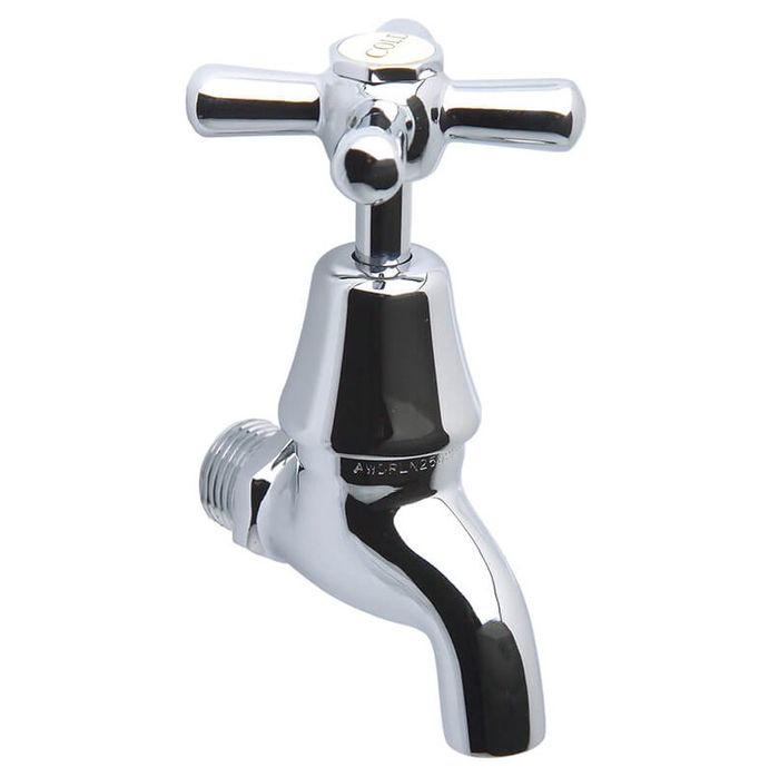 Chrome plated brass Bib Tap - Anti vandal, includes hot/cold and blue/red buttons and premium jumper valve. Max Temp 80 deg C. Max pressure 1000kPa.
